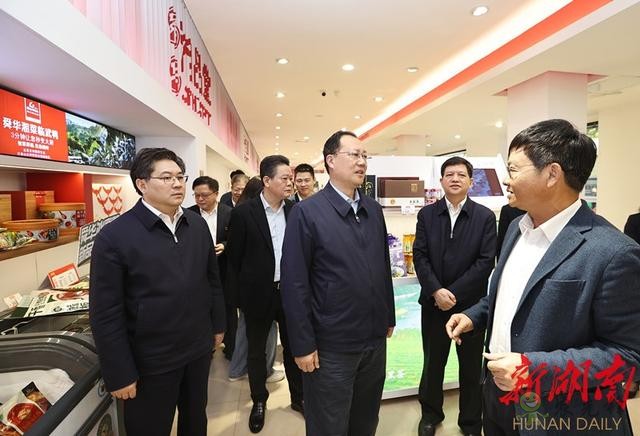 毛偉明一行首先來到湖南脫貧地區優質農產品展示展銷中心。展廳內琳瑯滿目擺放著數百種“湘字號”農副產品,網絡主播正在直播間熱情帶貨。毛偉明鼓勵負責同志進一步豐富產品種類,拓寬產品銷售渠道,建立產銷合作長期機制,帶動脫貧地區農戶穩步奔小康。